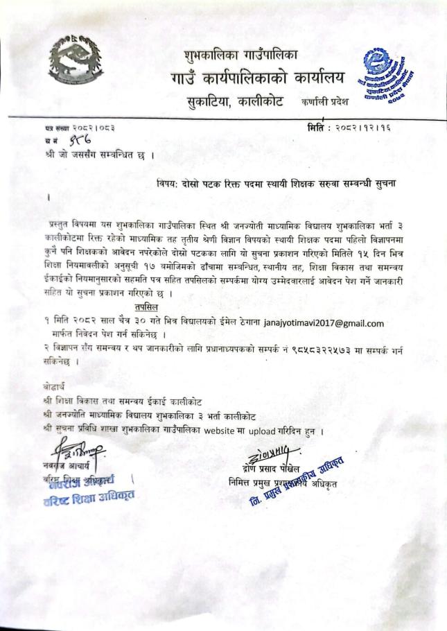 द्रोस्रो पटक रिक्त पदमा स्थायी शिक्षक सरुवा सम्बन्धि सूचना